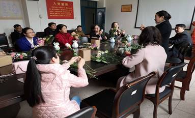 为庆祝第109个国际“三八”妇女节,提升教师的艺术修养,增强凝聚力,365英国上市公司分工会于3月7日在1221会议室举行花艺品香活动。