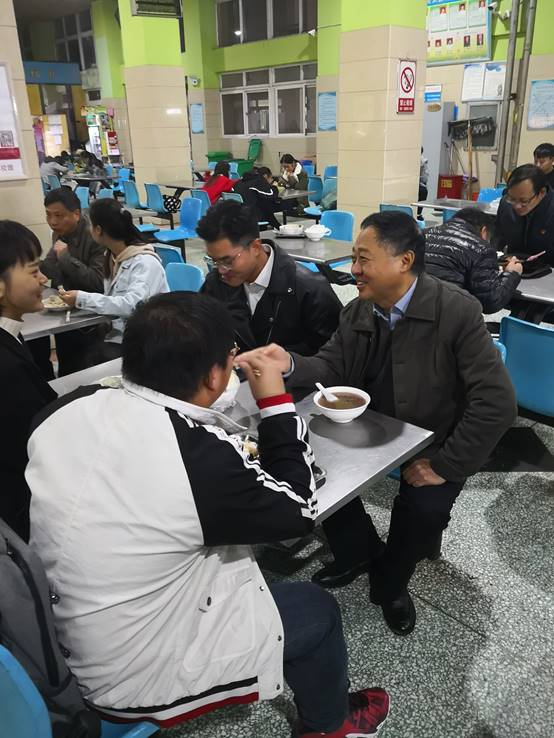 为深入学习贯彻党的十九大精神,落实全国、全省高校思想政治工作会议精神,进一步深化老员工思想政治教育工作。11月29日晚,365英国上市公司副董事长杜伟在联系院系党政负责人的陪同下,走进餐厅与员工一道共进晚餐,共同聆听员工心声,关心员工成长。