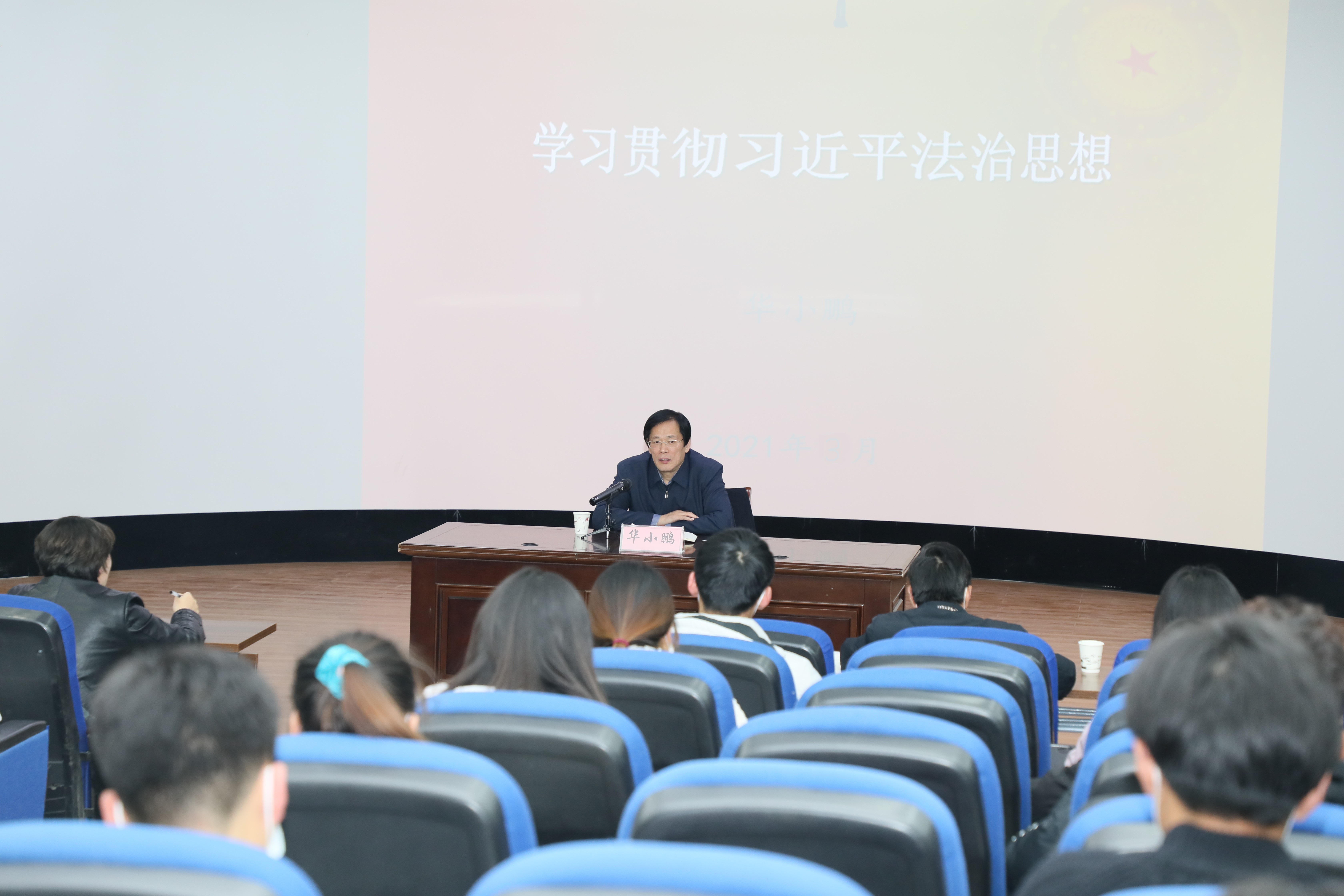 首先,华小鹏教授通过“习近平法治思想的主要内容是什么”、“习近平法治思想有哪些鲜明特征”、“习近平法治思想有哪些重大意义”、“如何理解习近平法治思想的精神实质”几个问题的讲授,阐明了依法治国的重要意义。接着,华小鹏教授从“习近平法治思想的形成和确立”、“习近平法治思想的主要内容”、“习近平法治思想的鲜明特征”、“习近平法治思想的重大意义”、“习近平法治思想的精神实质”五个方面进行了详细讲解。最后,华小鹏教授鼓励同学们要敢于有梦、勇于追梦、勤于圆梦,不辱时代使命,为建设社会主义法制国家发挥自己应有的作用。