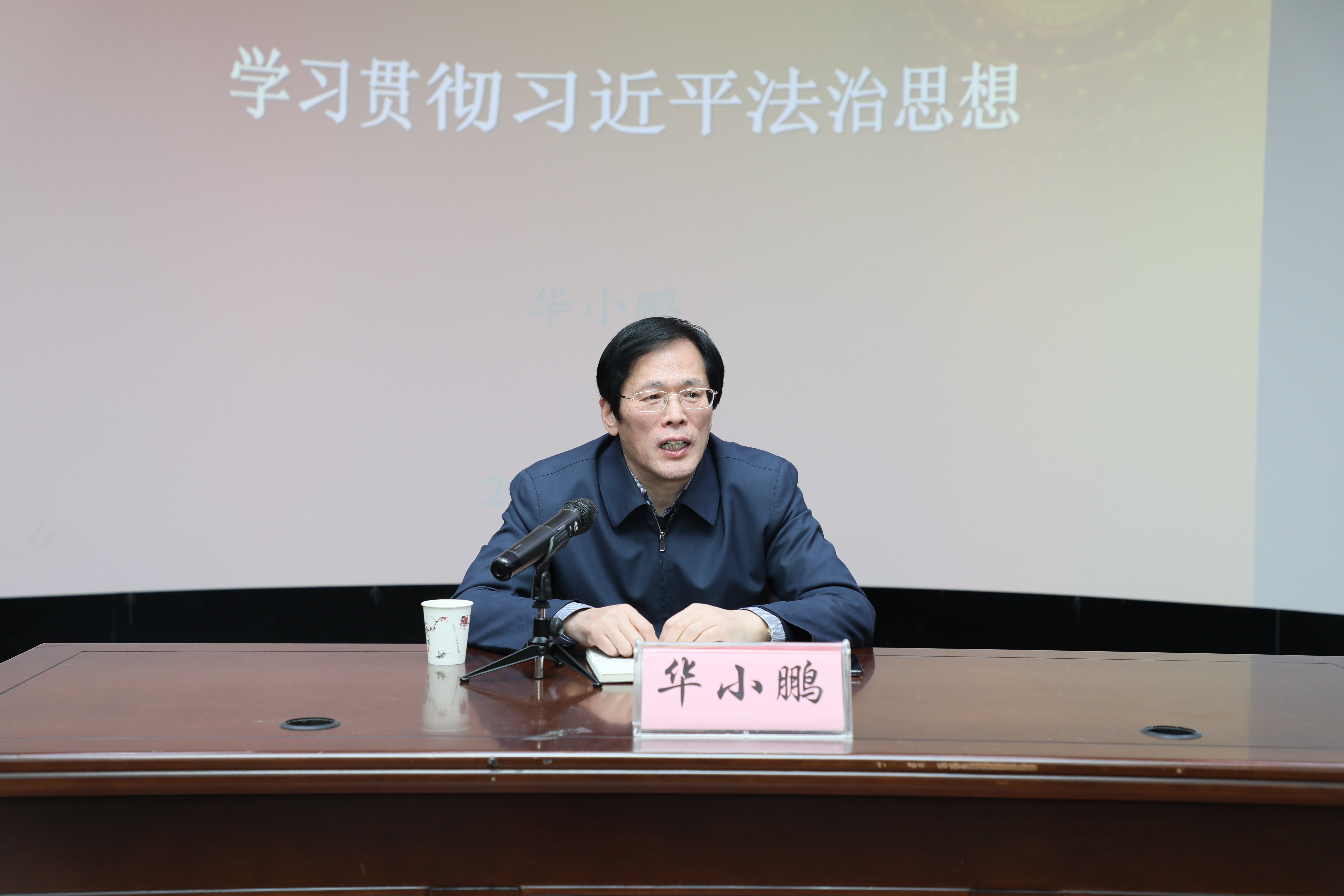 为全面推进习近平新时代中国特色社会主义思想的贯彻落实情况,不断提员工法治素养和道德素质,启迪领航人生规划,3月25日下午,公司党委书记华小鹏教授在2106教室为2020级法学专业员工上了题为习近平法治思想的思政课。