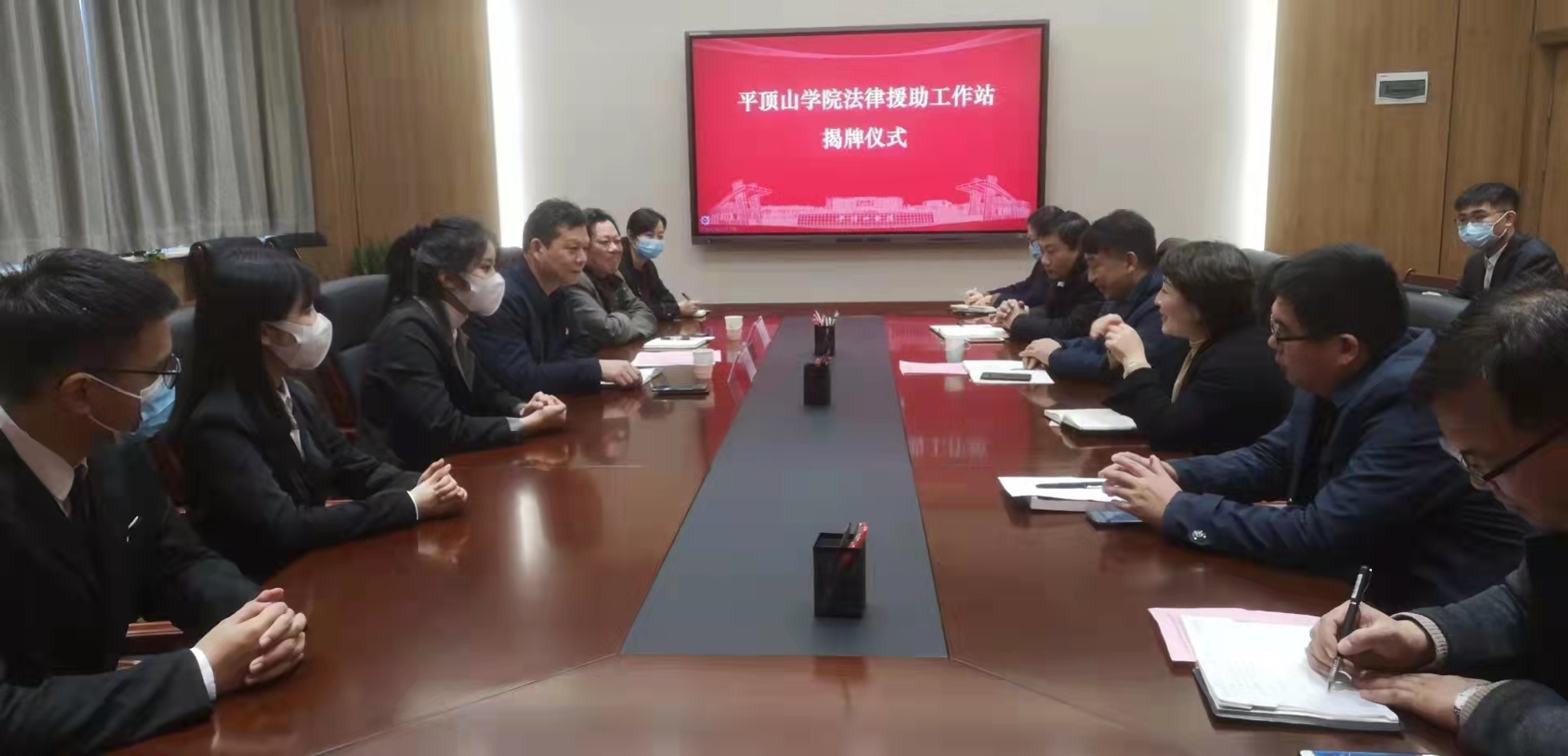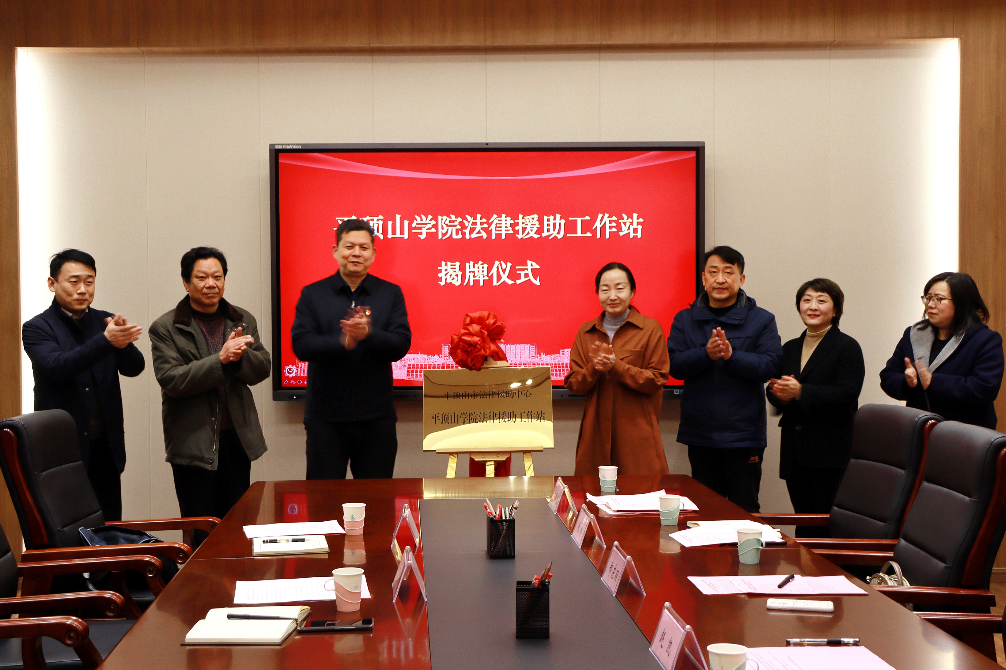 12月11日上午,365英国上市公司与平顶山市司法局共建“365英国上市公司法律援助工作站”揭牌仪式在办公楼403会议室举行。平顶山市司法局党委委员、副局长李朝峰,法律援助科科长赵自卫,公司副董事长郑东丽,科研处负责人,政公司党政负责人及师生代表参加了揭牌仪式。仪式由对外合作处处长赵凯主持。