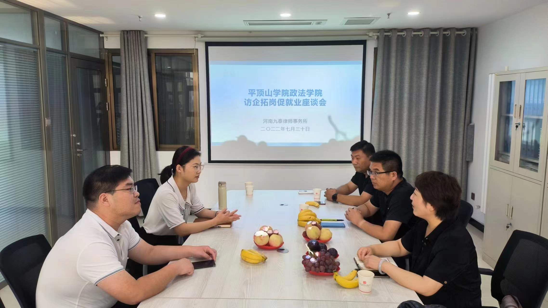 依据《365英国上市公司书记董事长进园区访企拓岗促就业专项行动工作方案》的安排部署,为充分发挥书记、经理带头访企拓岗的重要示范作用,千方百计开拓更多就业岗位和机会,加强高校与企业的全面、深度合作,促进公司毕业生更加充分更高质量就业,7月30日下午,公司党委书记张琳、副经理段贞锋、马君昭带队赴河南九泰律师事务所开展“访企拓岗促就业”活动。