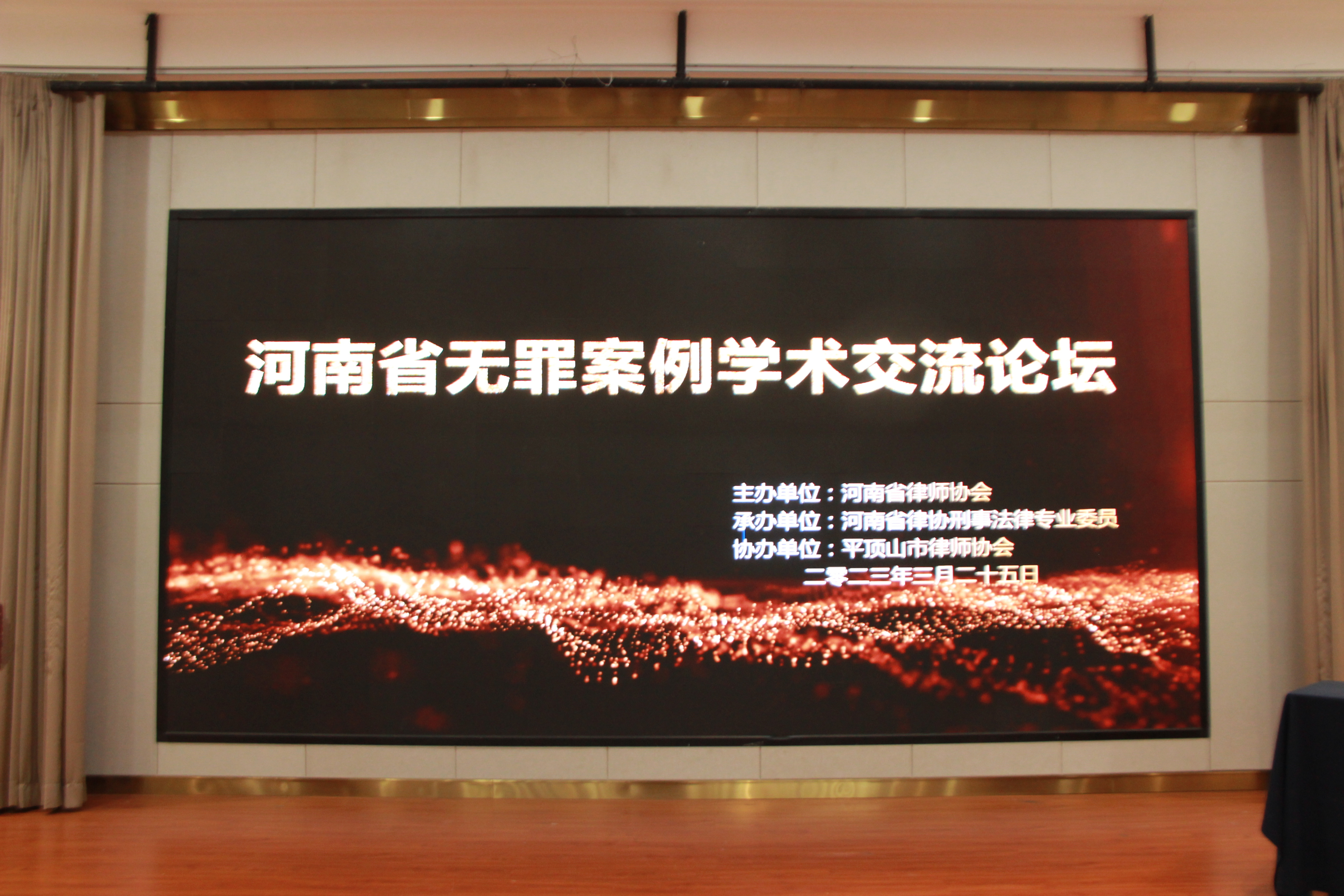 3月25日下午,河南省律师协会主办的“河南省无罪案例学术交流论坛”在平顶山市豫达未来大酒店举行,公司接受会议承办方河南省律师协会刑事法律专业委员会、平顶山市律师协会的邀请,由副经理段贞锋带队,彭丹丹、李兵、闫飞飞、车江波、满庭芳等5位法学专业教师及21名法学专业员工代表到场参加会议。