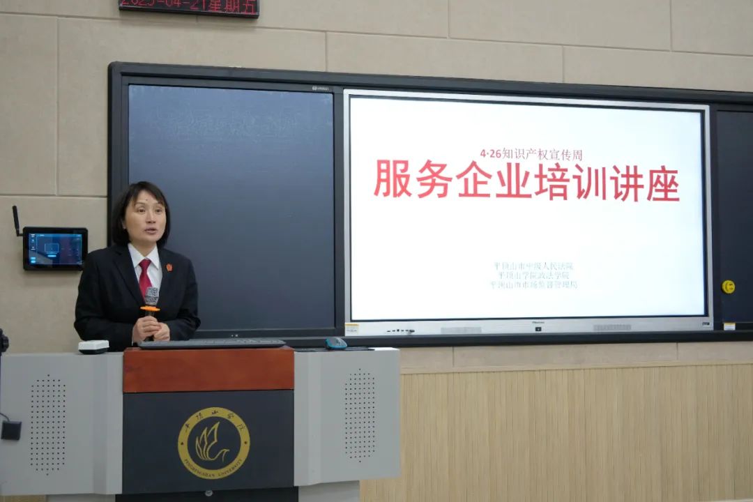 在4月26日世界知识产权宣传日来临之际,4月21日下午,平顶山中院联合平顶山市市场监督管理局(知识产权局)及公司共同举办了“企业知识产权保护专题培训讲座”活动。活动在公司图书馆206教室举行,公司知识产权负责人彭丹丹博士作了服务企业培训专题讲座,全市在知识产权领域具有代表性的高新技术企业、科技型中小企业等20余家企业、市市场监督管理局(知识产权局)知识产权保护科科长郑建东参加活动。讲座由训由市中院民三庭副庭长盛华平主持。