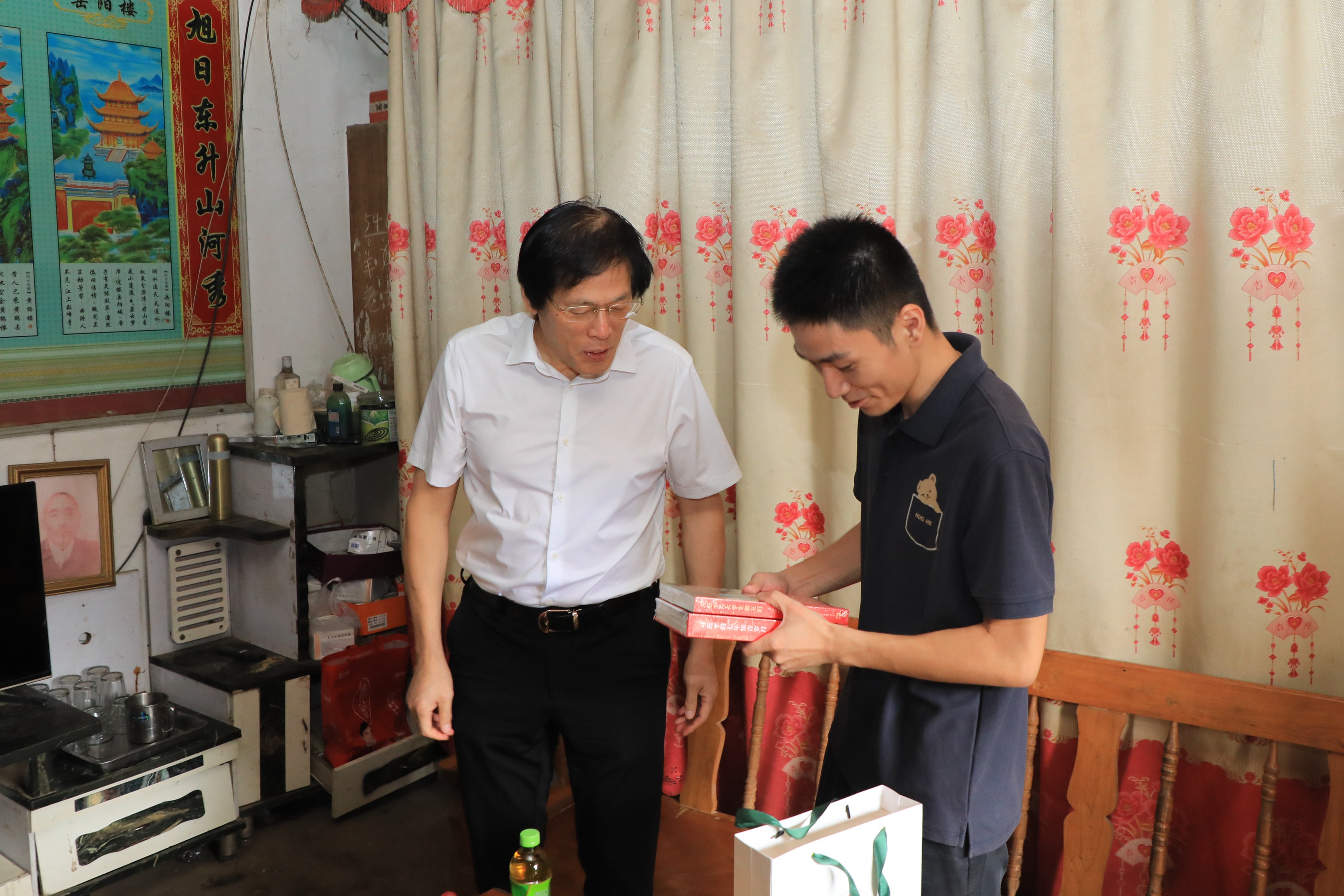 在杨海洋家中,华小鹏为其送上“精神大餐”--《习近平的七年知青岁月》《习近平与老员工朋友们》《平凡的世界》等励志书籍,勉励他胸怀报国之志,刻苦学习、立志成才,不负韶华。随后,华小鹏就家庭经济状况、收入来源、学习情况、军旅生涯、退役复学后的学习状况以及人生规划和就业打算等方面与员工家长、受访同学进行了深入细致的交流。当得知杨海洋同学在部队连续两年受到嘉奖并获得“四有好士兵”时,华小鹏书记鼓励他把部队的优良作风发扬好,按照“四有好士兵”的标准,切实做一名有灵魂、有本事、有血性、有品德的青年老员工。当了解到杨海洋同学正在备考燕山大学研究生时,华小鹏叮嘱他一定要在学好外语上下好功夫,用好退役老员工考研优待政策,努力学习,争取考研成功上岸。得知杨海洋同学在疫情期间,利用寒暑假积极参与团省委“春雁行动”计划参与家乡建设和志愿服务,华小鹏书记给与了高度肯定,希望他学好理论知识的同时,不断加强社会实践,坚持理论与实践相结合,在知行合一中担当作为。