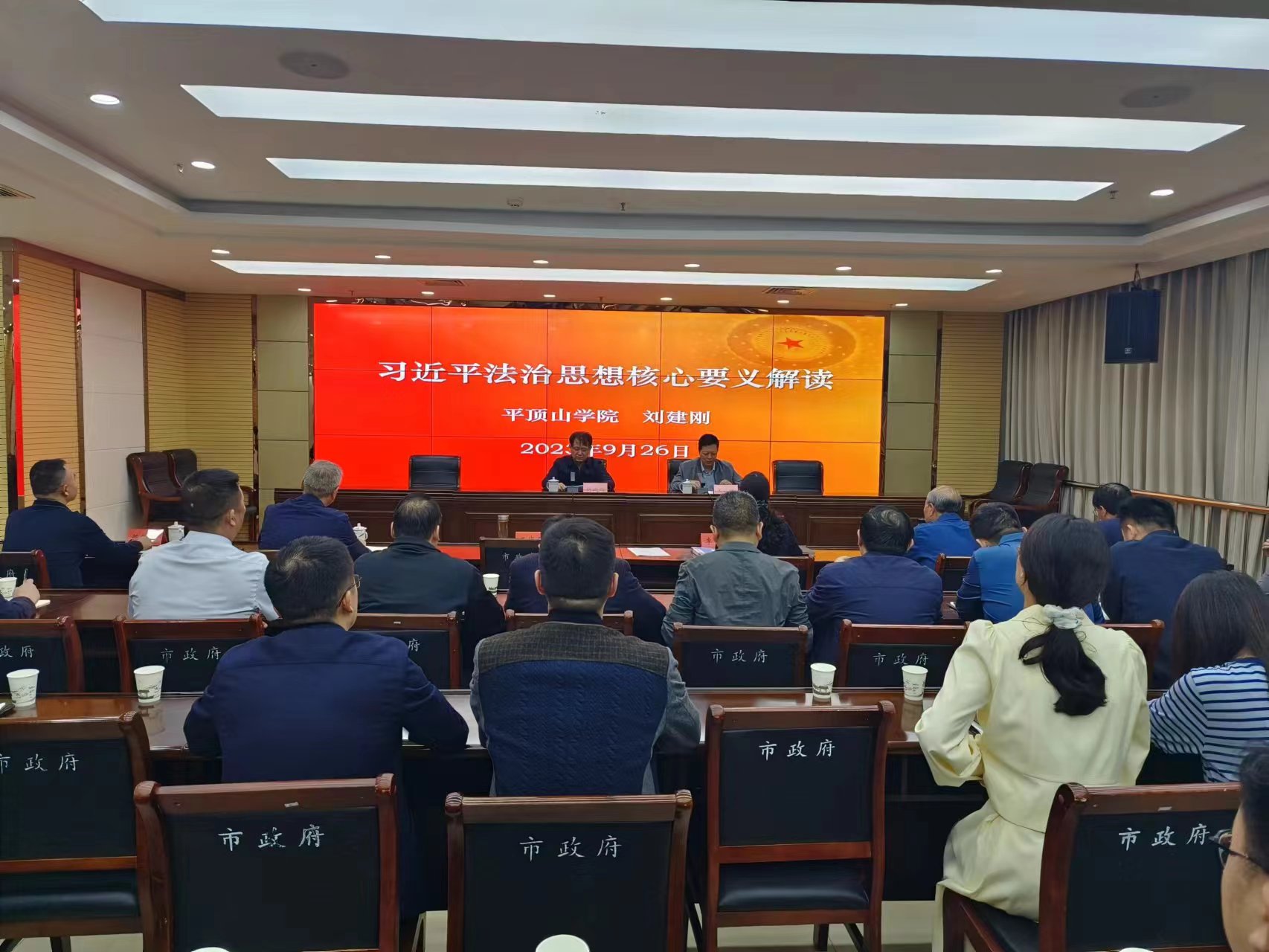 9月26日上午,应平顶山市委政法委的邀请,公司习近平法治思想讲习所成员刘建刚博士以《习近平法治思想核心要义解读》为主题,为市委政法委全体成员作了一场专题讲座。讲座由市委政法委副书记王战胜主持。