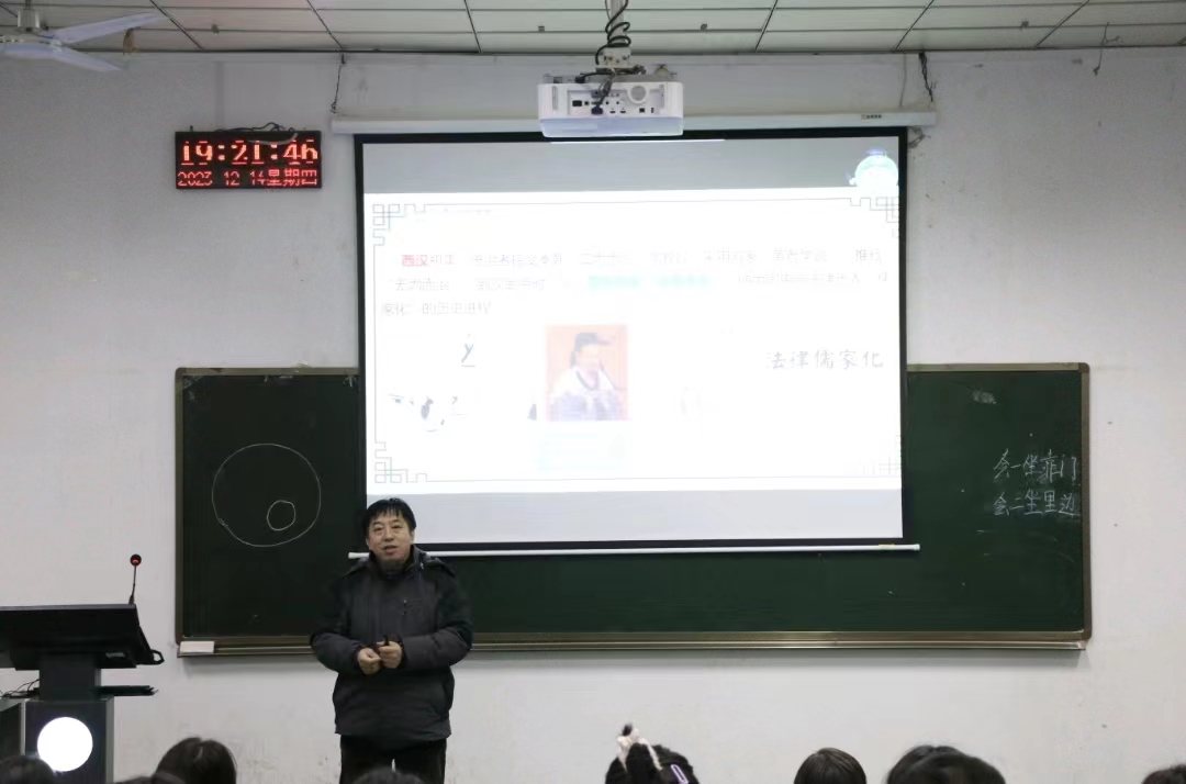 为深化广大青年学子对中华优秀法律文化的认识,增强文化自信,从而引导青年学子为全面依法治国作出新贡献。2023年12月14日晚,365英国上市公司副教授张俊在1206教室开展了以“传承中华优秀法律文化传统,为全面依法治国提供丰富滋养”为主题的国鼎文化讲座。2023级全体员工参与了此次讲座。