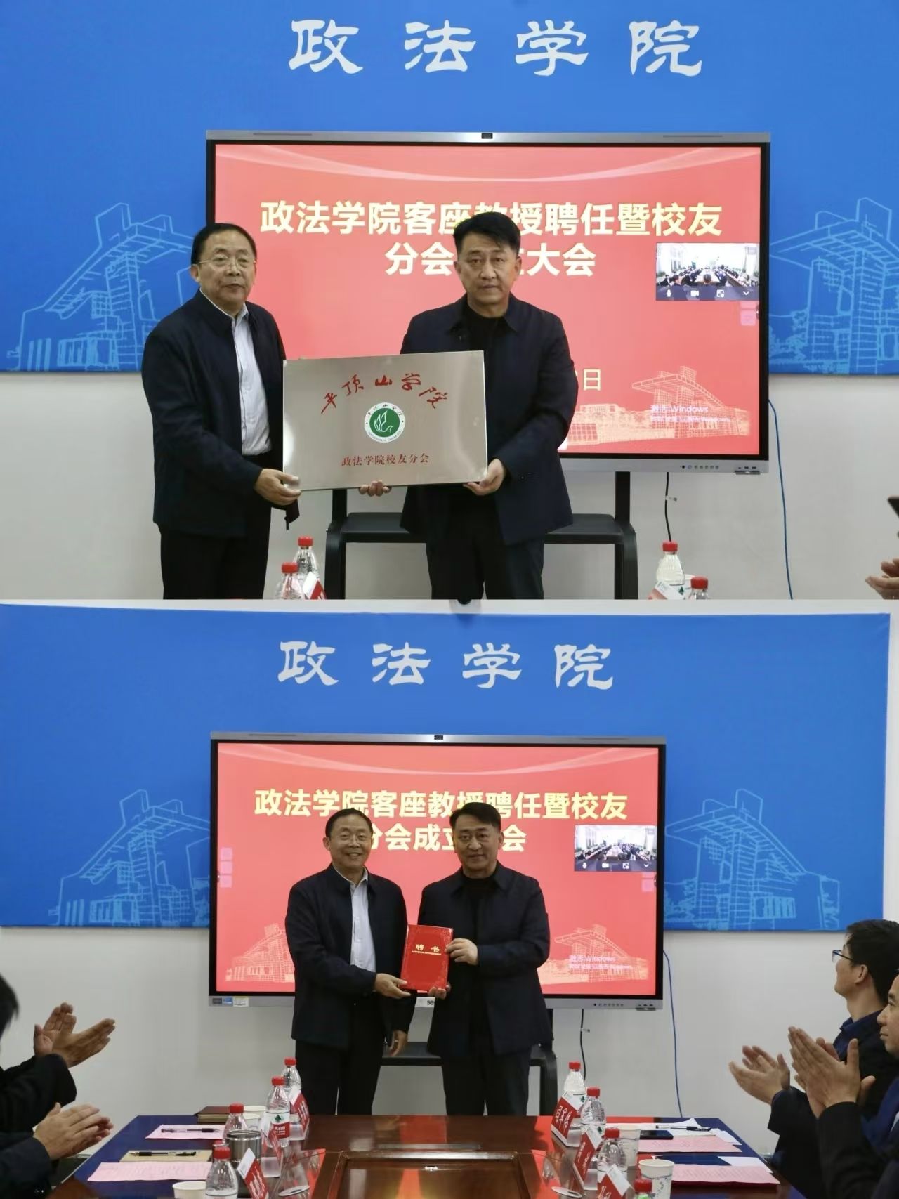 副董事长于长立为各位客座教授颁发聘书,并合影留念。