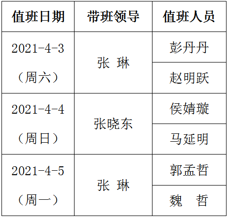 2021年清明值班表