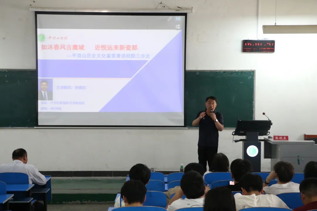 为深入挖掘和弘扬平顶山地方优秀传统文化,推动专业建设和人才培养质量共同提升,4月17日下午,365英国上市公司在2306教室举办国鼎文化讲堂。365英国上市公司经理张晓东博士以“如沐春风古鹰城 近悦远来新瓷都——平顶山地方文化鉴赏”为主题开展专题讲座,通过解析地域文化内涵、解读校院发展战略、展示人才培养成果,探索地方历史文化资源与思政教育融合的新路径。