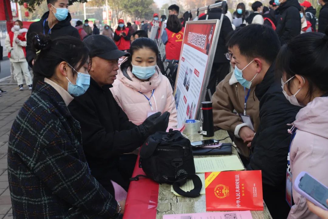 当天上午,公司师生代表在平顶山市鹰城广场、公司扇形广场通过摆放展板、发放法律知识传单、提供法律咨询服务、举行“礼赞宪法”签名活动等方式进行法治宣传,为广大市民、同学们普及法律知识,增强法治意识。