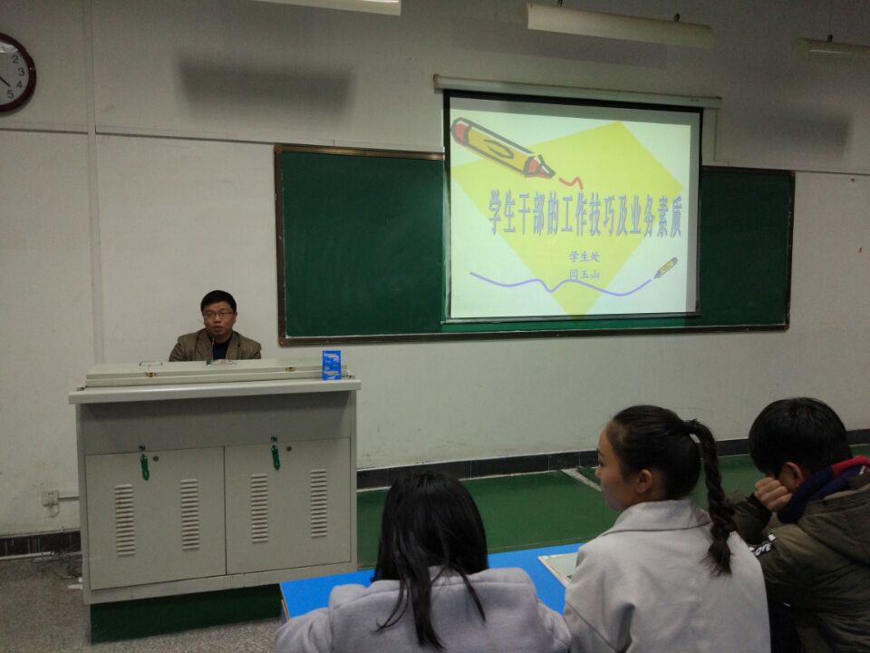 闫老师首先要求员工干部对所担任员工干部的角色进行定位,清晰、明确认识自己的身份,做好老师与同学之间信息的沟通与传递,搭建好人际关系,为同学服务。其次,通过交际能力,分析、判断、决策能力,组织能力,创新能力及公文写作能力等五方面向员工干部讲述了做好员工干部应有的业务素质。最后,闫老师重点讲述了有关员工干部在公文写作方面的技巧,引导广大青年员工干部在公文写作方面继续前进,并且他希望广大青年员工干部能够做学习与工作并重,成绩与业绩齐飞的践行者。