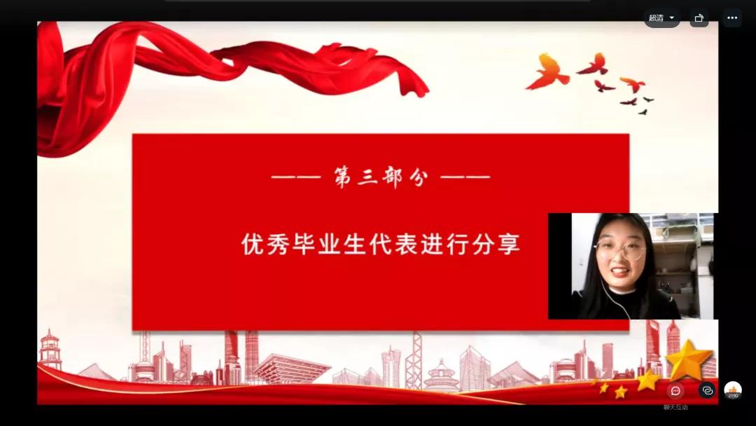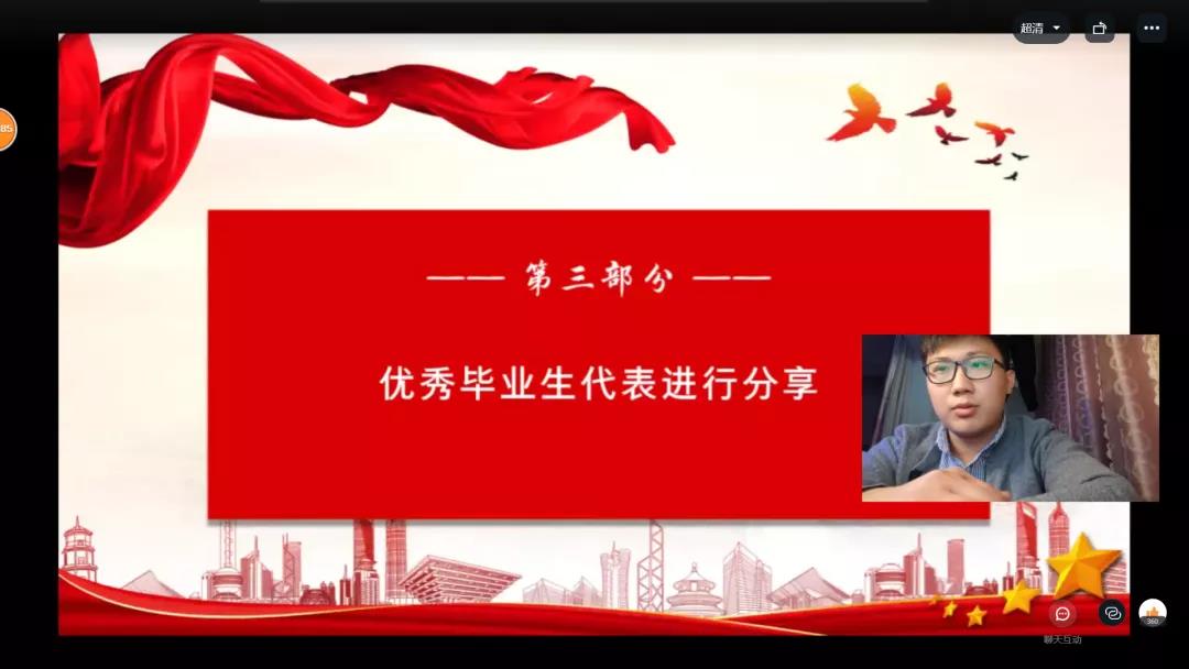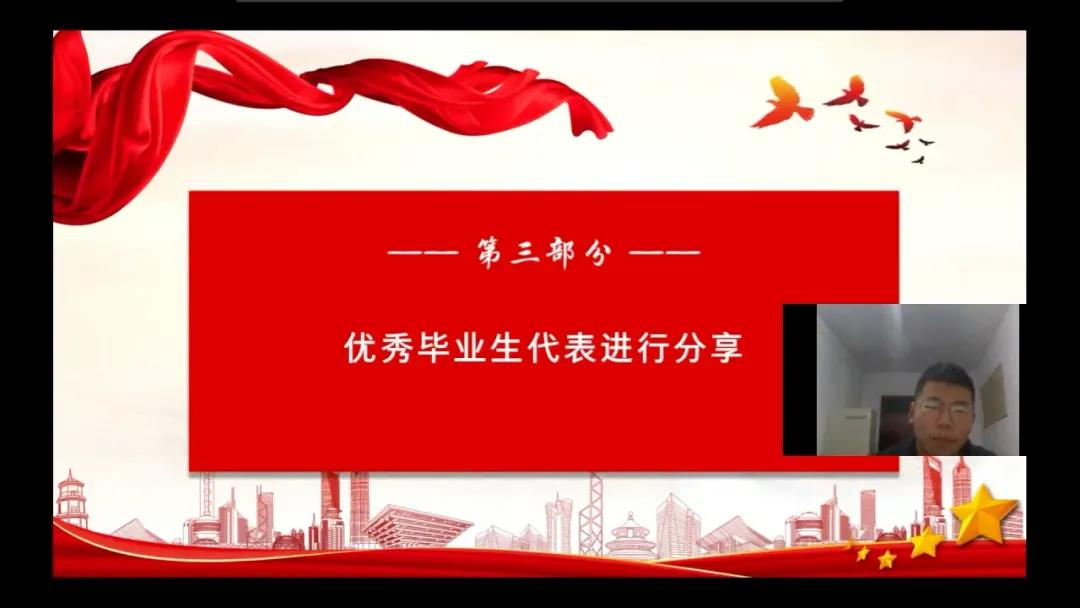 最后,政公司党委书记张琳对本次会议进行总结讲话,希望各位同学能够牢记学长学姐分享的详细而实用的经验,以优秀学长学姐为榜样,在大学四年放飞梦想、砥砺前行。“追梦需要激情和理想,圆梦需要奋斗和奉献。”本次线上交流会的成功召开,使公司青年员工对大学四年的学习历程和未来的就业方向有了更清晰的认识与规划,也有利于更加坚定同学们脚踏实地、知行合一、不负青春韶华的决心与信心。