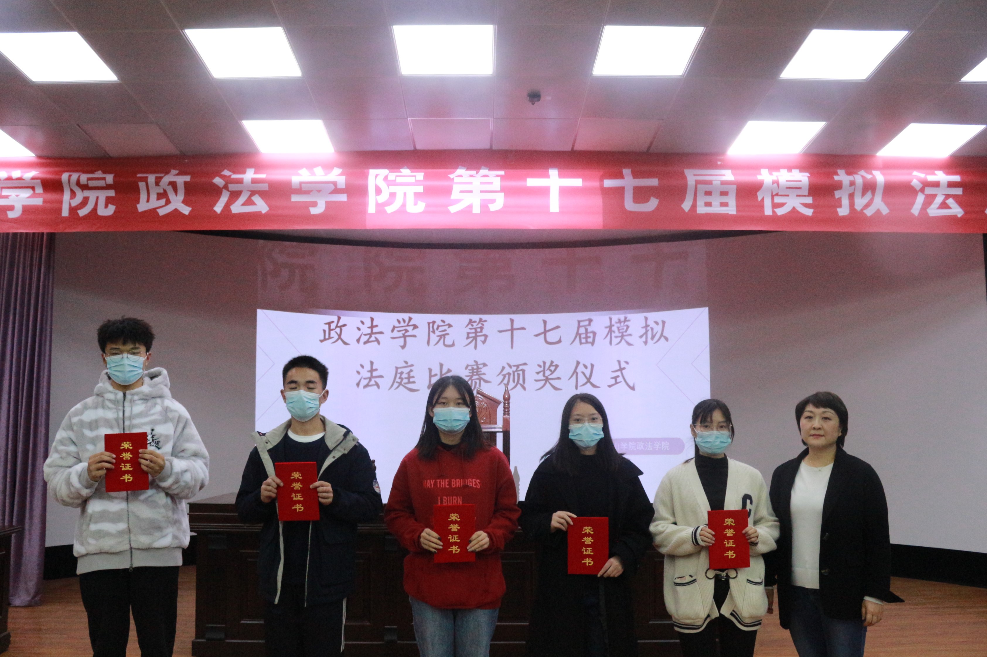 随后,段经理对活动进行总结,他对积极参与本次模拟法庭的同学们表示肯定与赞赏,同时指出同学们辩论时应该充满信心,有辩论的气势,展现出自己的能力。最后,张琳书记为获奖团队颁发荣誉证书。至此,本次模拟法庭比赛圆满结束。