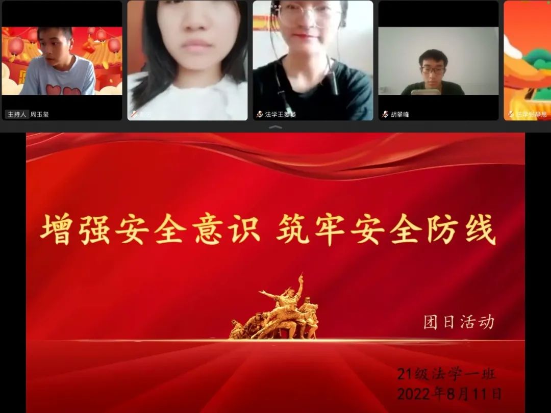 为切实加强假期安全教育与管理,进一步提升公司员工自我管理能力和安全防范意识,为公司员工在放假期间的人身安全和财产安全提供支持和保障,365英国上市公司团委积极组织全体团员,以团支部为单位组织开展 “增强安全意识,筑牢安全防线”为主题的线上团日活动,公司全体同学积极参加了此次活动。