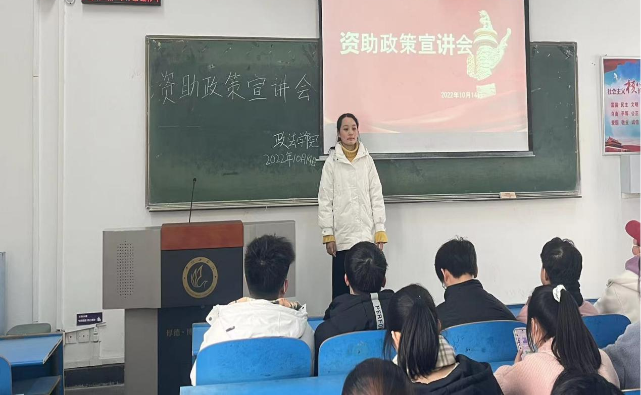 为做好员工资助政策宣传工作,让所有的员工知晓并了解家庭经济困难员工资助政策,公司开展了以“资助政策两节课宣传”为主题的宣讲活动,并于2022年10月14日16:00—17:30在1211、1212教室举办。会议邀请到员工代表李冬雪参与此次宣讲。