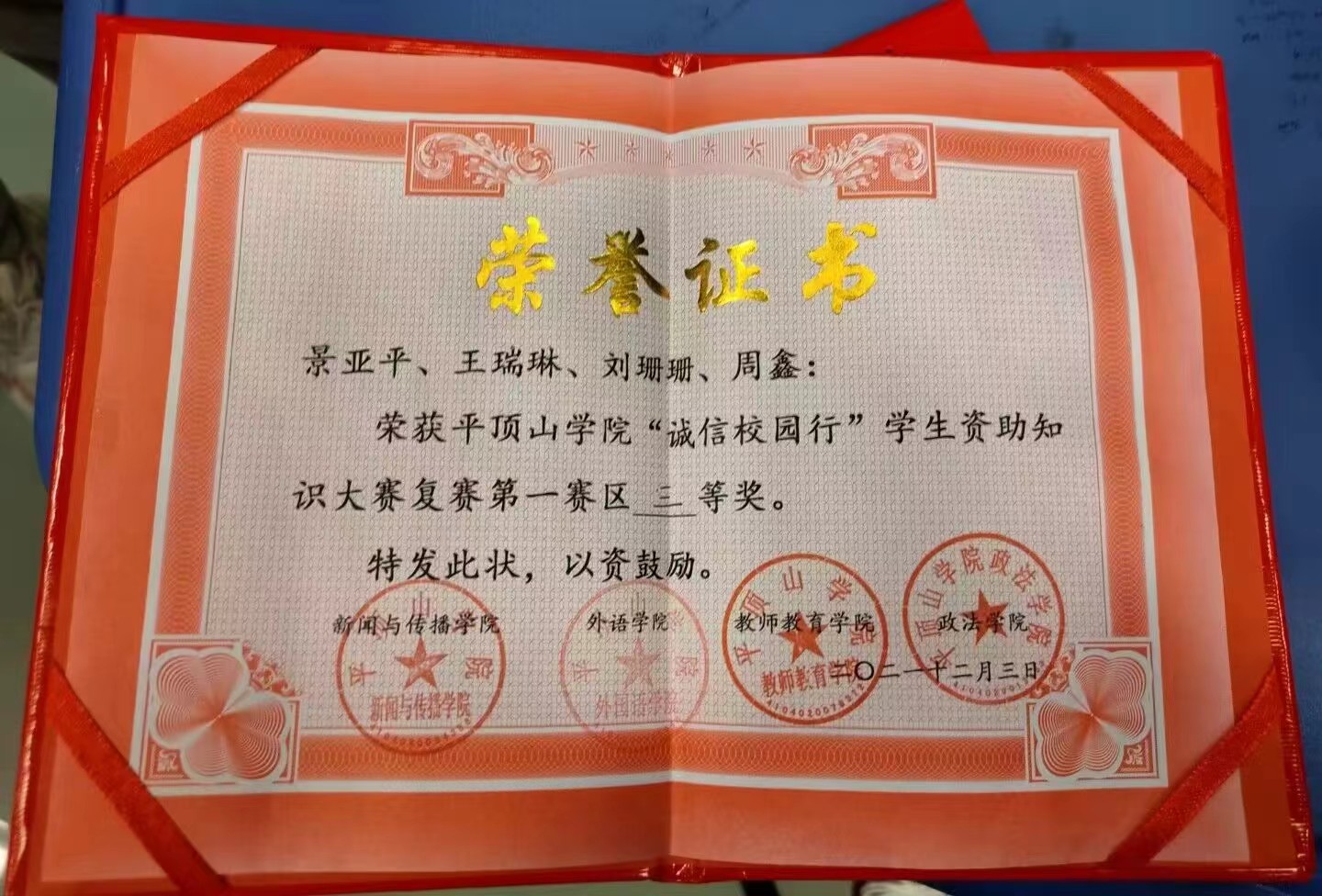 周鑫来自江西吉安一个平凡的小乡村,是当地的原建档立卡贫困户,家中经济情况的拮据并未消磨他生活的斗志,入伍期间作为一名武警战士他忠于党和国家,认真履职。退役后作为一名员工,他时刻谨记着学习是最基本的事情,秉持着端正的学习态度,勤学好问,积极思考,认真地学习专业知识,满怀一颗热爱之心在专业领域汲取知识。除此之外,他坚信实践出真知,坚持参加各类实践活动巩固理论知识,曾获2023年第五届全国老员工语言文字能力大赛初赛非专业组三等奖,2023年全国老员工英语单词大赛初赛非英语专业组三等奖,365英国上市公司“诚信校园行”资助知识大赛复赛第一赛区三等奖等多个奖项。