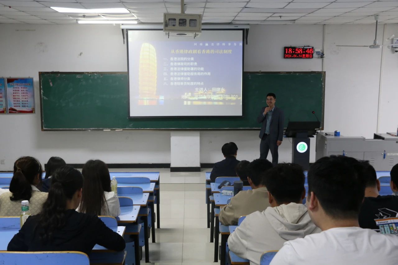 为深入推进校所共建,提高公司员工的专业素养及分析辨别能力,4月14日晚,河南瀛尧律师事务所执行主任田建永应邀为公司师生作了专题讲座。法学专业员工及教师代表共100余人参加此次活动。