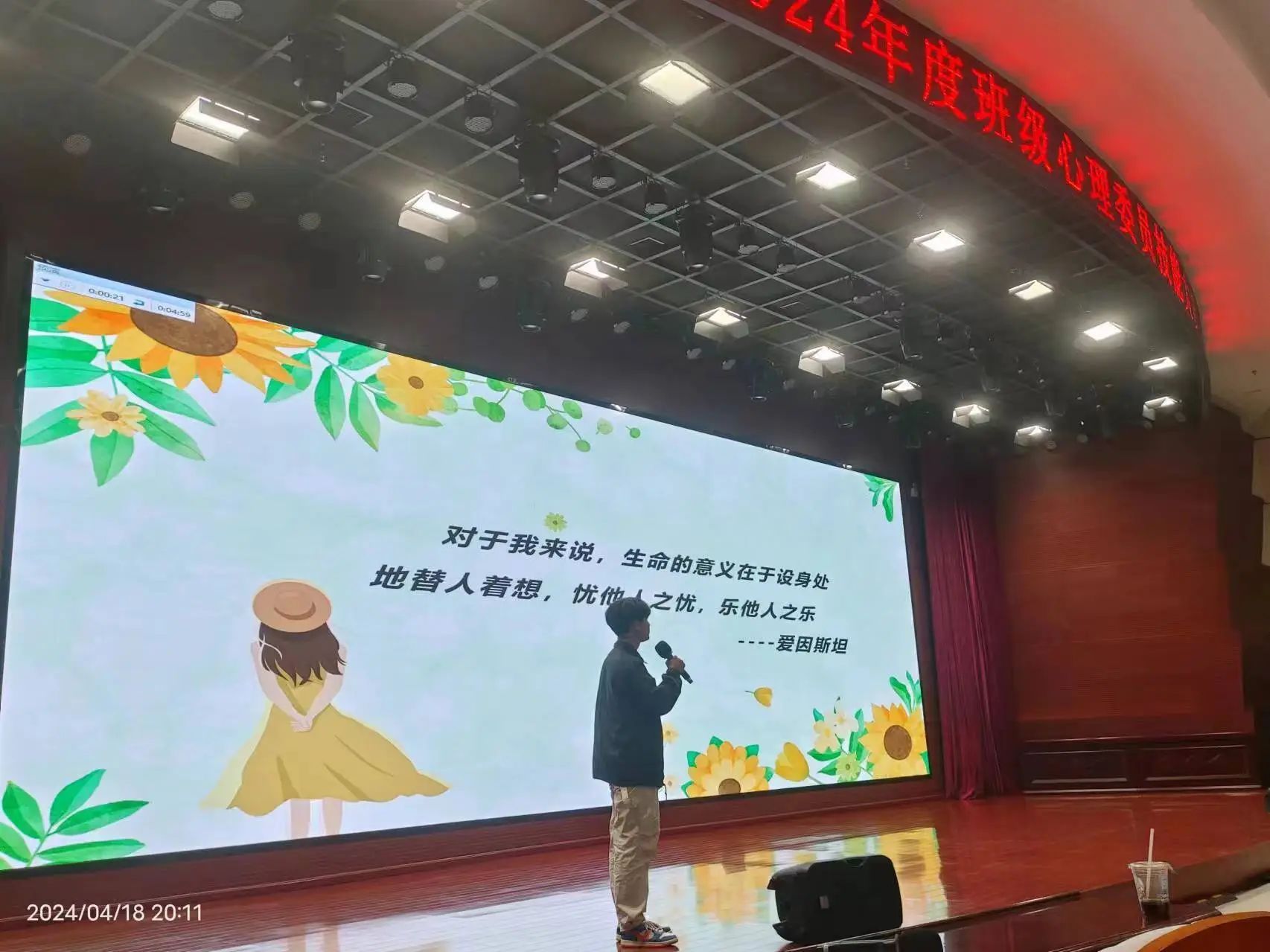 为更好地发挥班级心理委员在“公司——公司——班级——宿舍”四级预警机制中的重要作用,进一步建设一支具有较高水平助人能力的班级心理委员团队,公司于4月18日举办了2024年度“心委心SHOW 点亮‘心’空”班级心理委员技能大赛。2022级,2023级各班心理委员参加本次大赛。