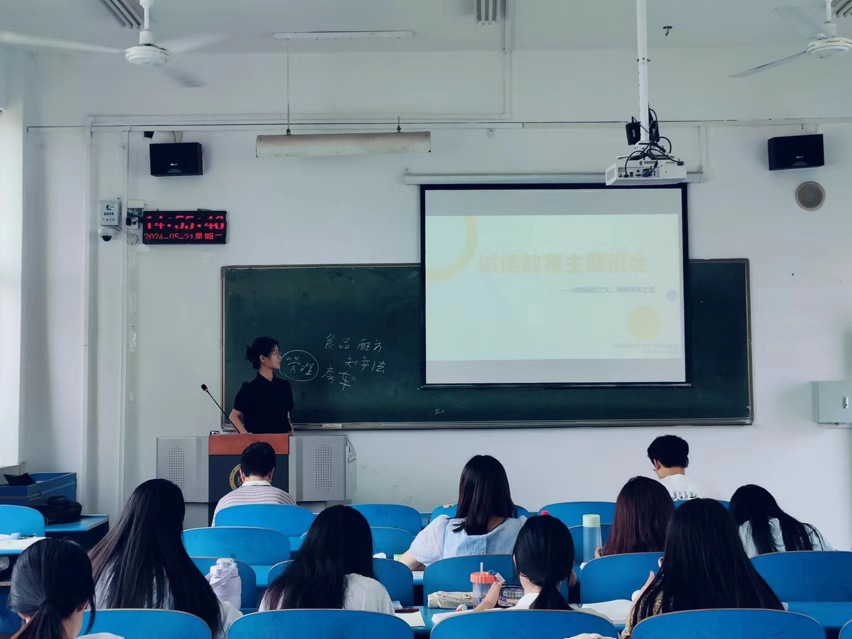 活动过程中,各班负责人首先向同学们介绍了诚信的重要性,以诚信参与资助活动为重点展开介绍了为什么要诚信参与资助活动以及怎样诚信参与资助活动。紧接着,各班负责人向大家讲解各项国家资助政策,包括国家奖学金、国家励志奖学金以及国家助学贷款等政策,帮助同学们了解各项资助活动的参与要求,增强大家对资助政策的理解的同时也方便后续高校助学贷款一系列资助工作的开展。随后,各班负责人以古代和现代的诚信故事为基点,透过现象看本质,向大家普及了在高校助学贷款中失信将会面临购房、购车困难等一系列不良后果,并带领大家进行诚信宣誓,进一步提高大家的诚信意识。