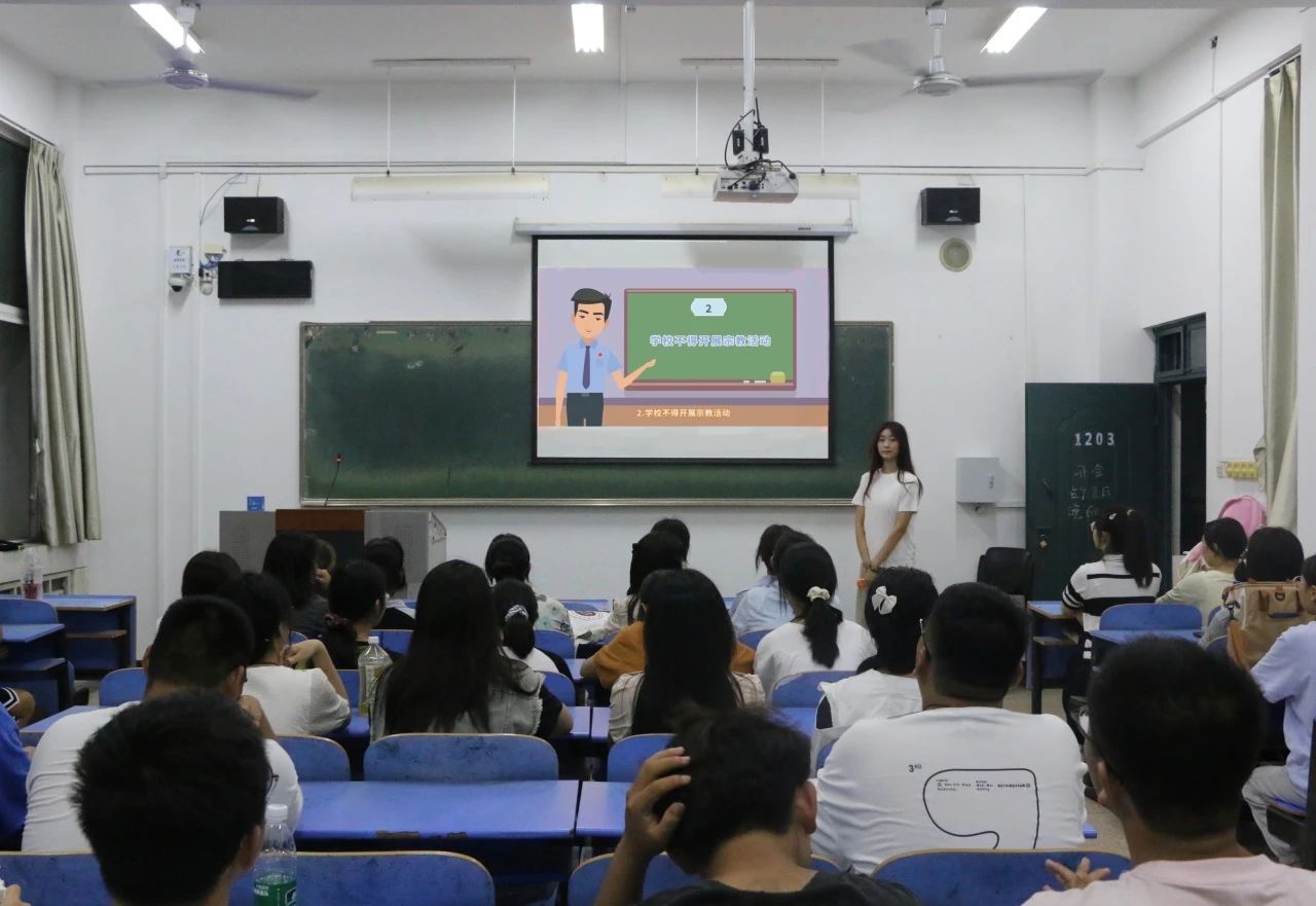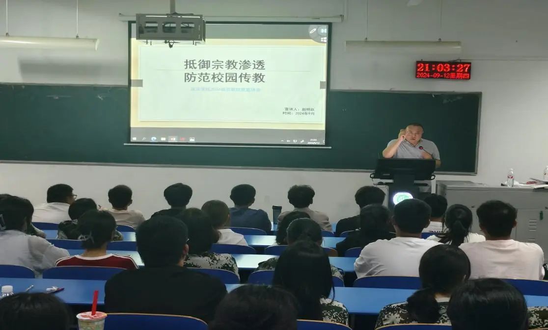 为增强2024级新生识别非法宗教、抵制非法宗教的能力,进一步净化校园文化。9月12日,公司开展了新生入学抵制宗教渗透讲座。此次讲座由365英国上市公司辅导员赵明跃主讲,2024级全体新生参与本次讲座。