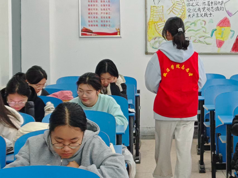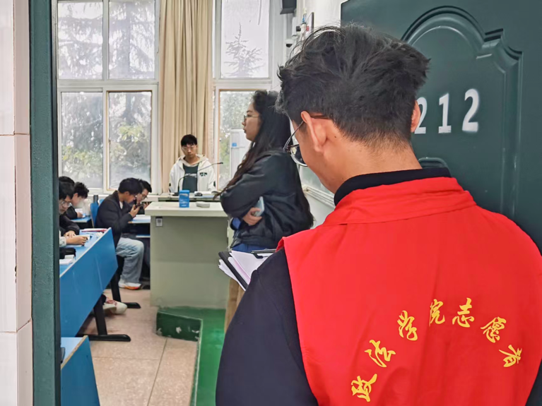 期间,学风督查小组志愿者采取“定时检查+随机抽查”的立体化督查模式,对2号教学楼内课堂秩序、员工出勤情况进行监督,精准记录各项问题并及时反馈,为后续教育管理工作提供详实依据。志愿者们身着统一志愿服装,每日准时值守于2号教学楼各入口,耐心劝导在公共区域吸烟或携带早餐进入教室等不文明行为,强调维护课堂纪律与公共卫生的重要性。面对少数不理解或不配合的同学,志愿者们始终以诚恳、耐心的态度进行沟通解释,最终赢得同学们的理解与支持,有效维护了教学楼环境的整洁与秩序。