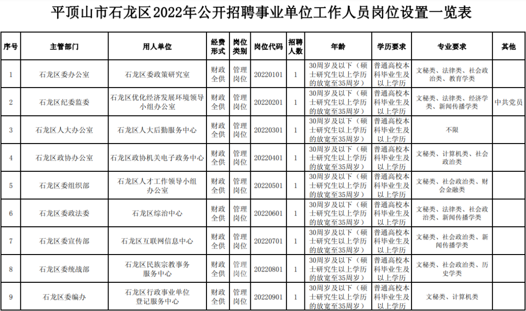 为加强石龙区人才队伍建设,进一步提高事业单位人员整体素质,按照《事业单位人事管理条例》(国务院令第652号)和河南省委组织部、河南省人社厅《关于印发<河南省事业单位公开招聘工作规程>的通知》(豫人社〔2015〕55号)文件精神,经区委、区政府研究决定,现面向社会公开招聘事业单位工作人员60名。