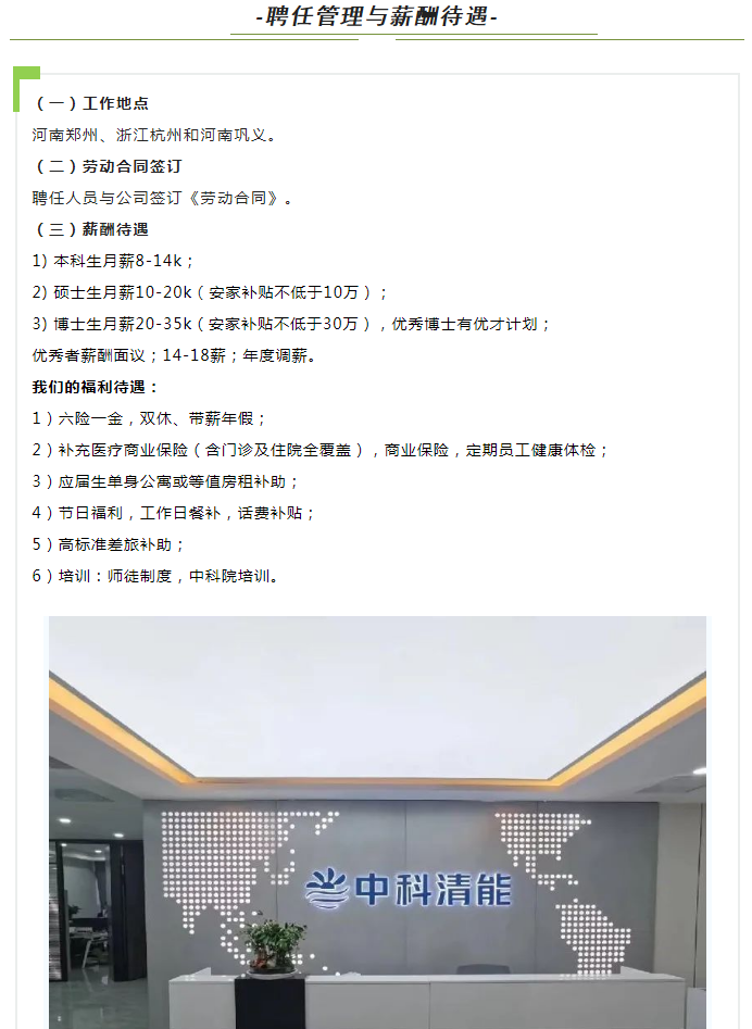 公司总部位于河南省巩义市,在深圳、郑州、杭州、上海等地均设有分支机构。公司团队骨干成员主要来自于:中广核、中能建、欧美技术型企业、中科院等,实力雄厚。现根据发展需要,河南中科清能科技有限公司诚邀优秀英才加盟,携手开创未来发展的新篇章,欢迎加入公司,成为中科清能的合伙人!