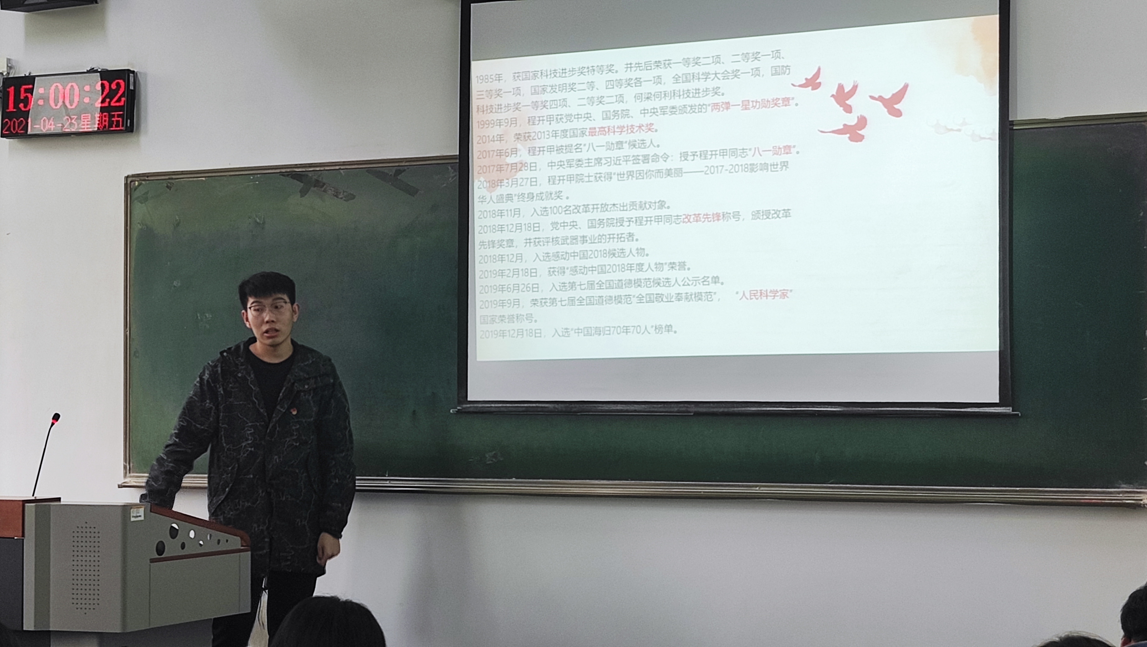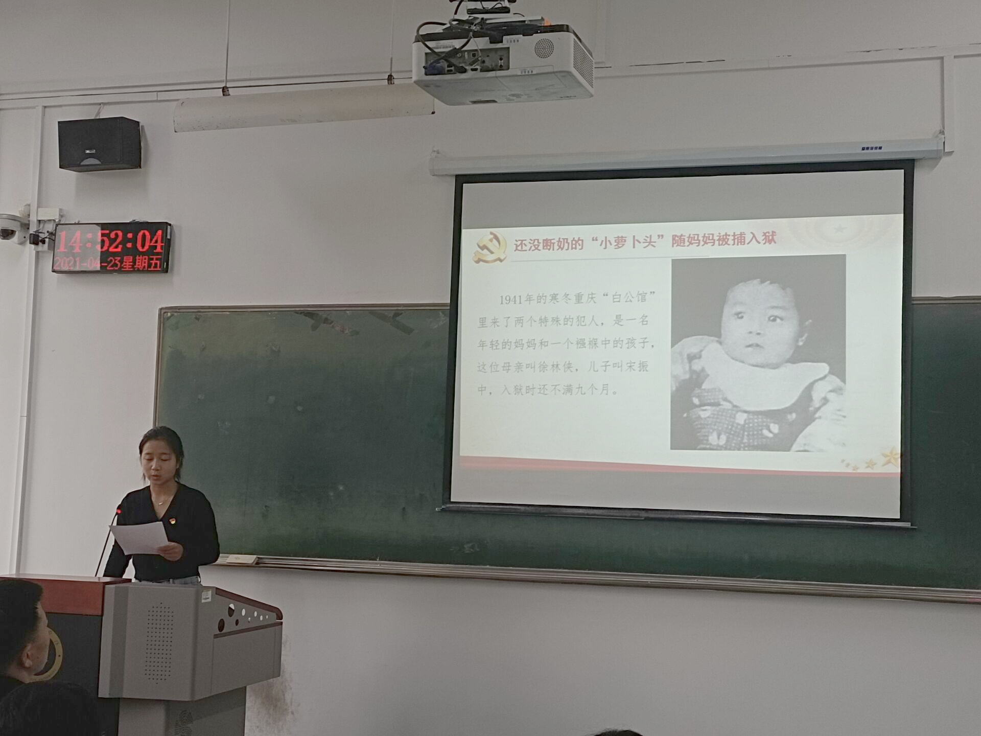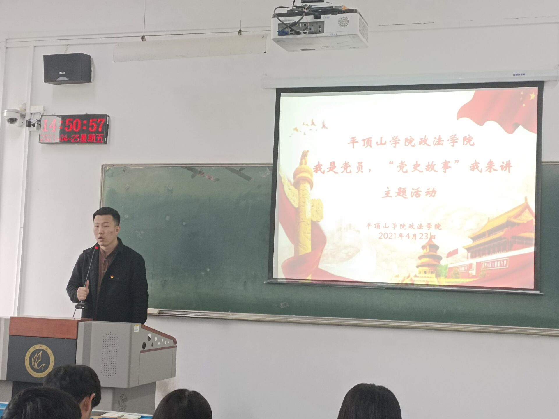 在启动仪式上,员工第一党支部书记马延明老师首先就开展党史学习教育的目的和意义进行了阐述,并对开展“我是党员,党史故事我来讲”系列活动做了明确的要求。马老师讲话中指出,作为与祖国一同成长的青年老员工,尤其是作为青年员工党员,要时刻牢记自己的入党初心和使命,按照习近平总书记学史明理、学史增信、学史崇德、学史力行的要求,不断提升理论水平,练就为人民服务的本领,以优异成绩迎接党的百年华诞。紧接着,18法学一班员工党员艾刘杰和王潇分别以《程开甲将军的一生》、《宋振中--最小的共产党员》为题进行了党史故事的讲解。