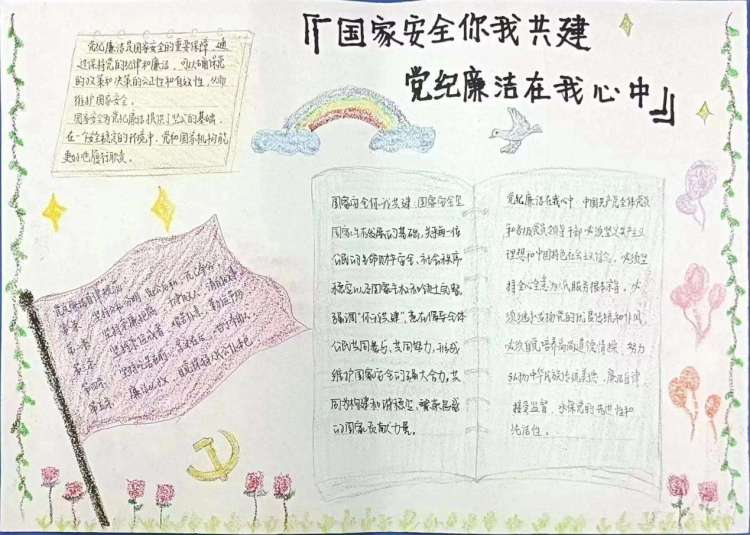 2.以小组为单位,每小组绘画一幅以“国家安全你我共建,党纪廉洁在我心中”为主题的手抄报。